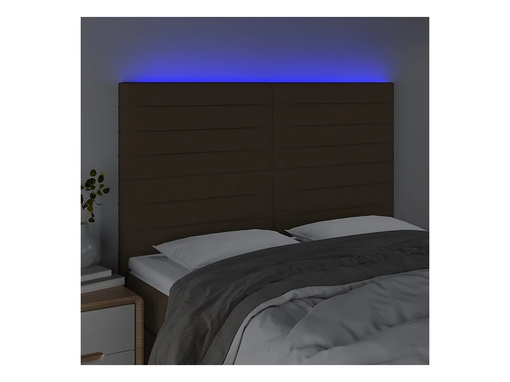 Cabecero con luces LED tela marrón oscuro 200x5x118/128 cm ES49038