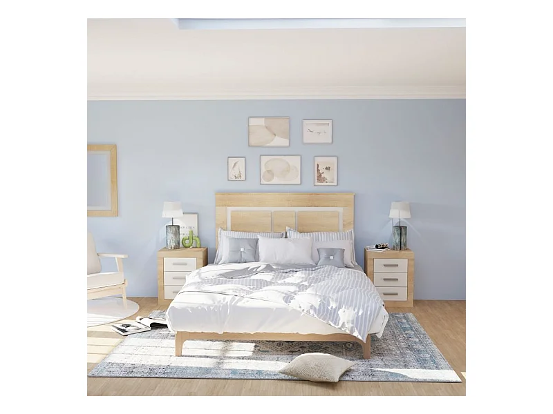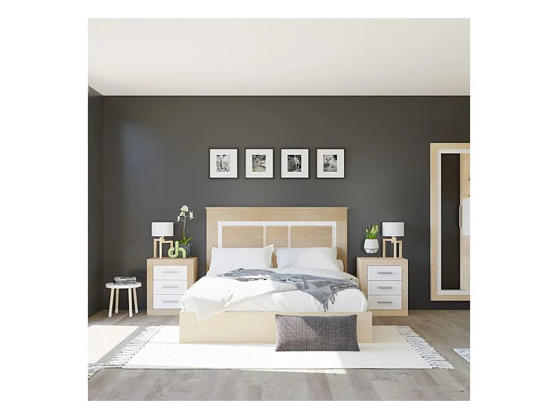 Conjunto de dormitorio Luca cabezal + 1 mesita de noche natural/blanco artik