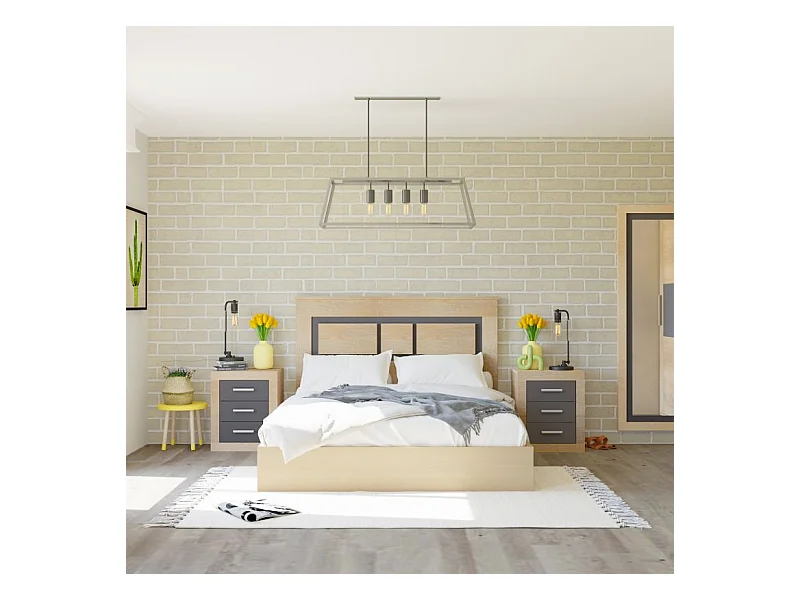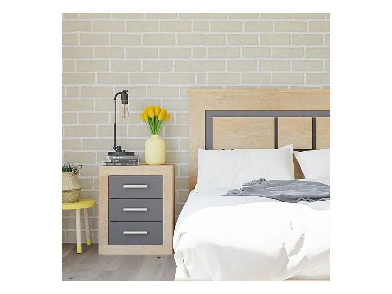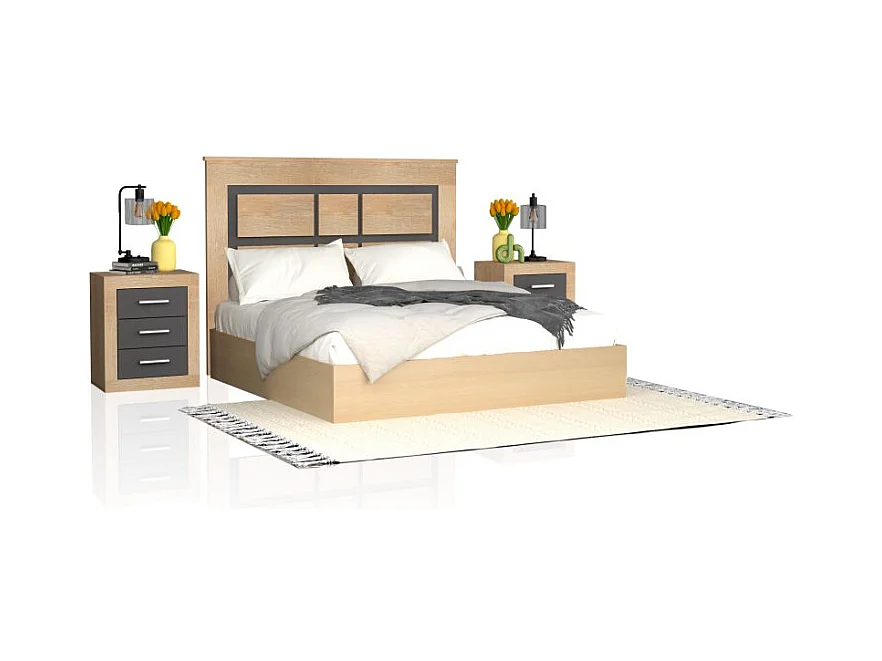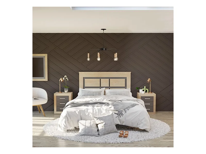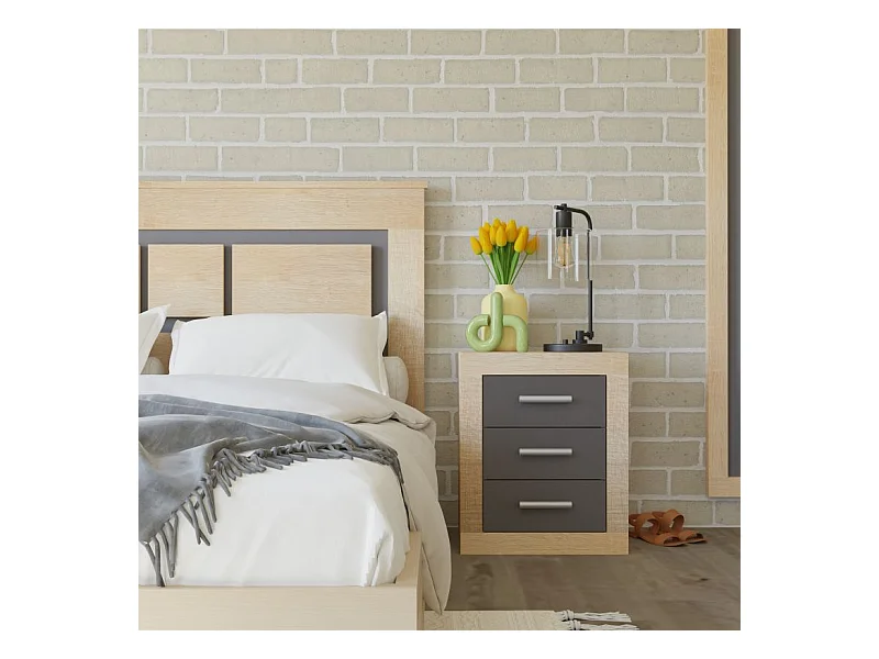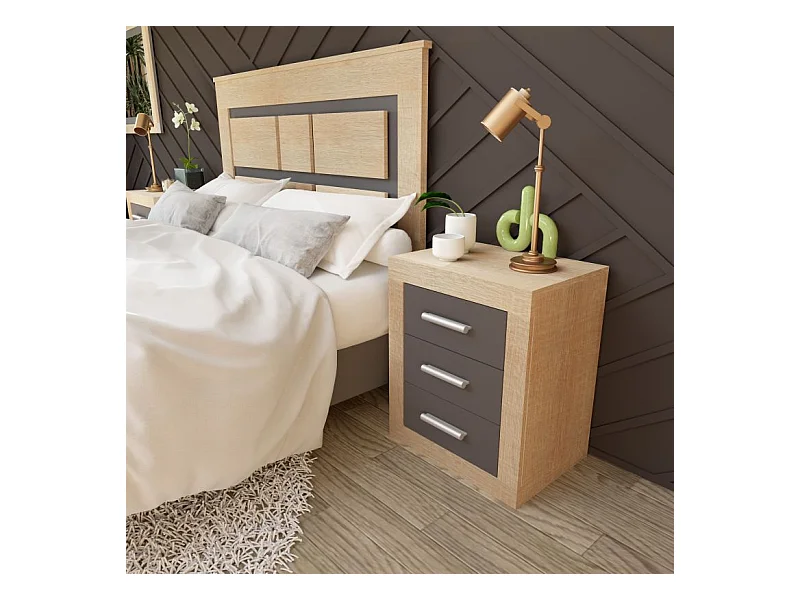 Cabecero con mesitas Luke Gris Antracita - Roble Nodi