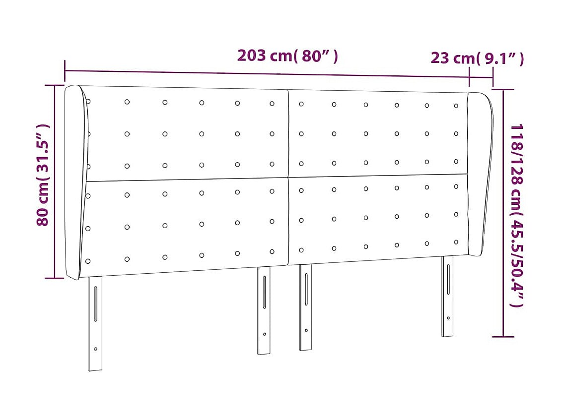 Cabecero con orejas cuero sintético crema 203x23x118/128 cm