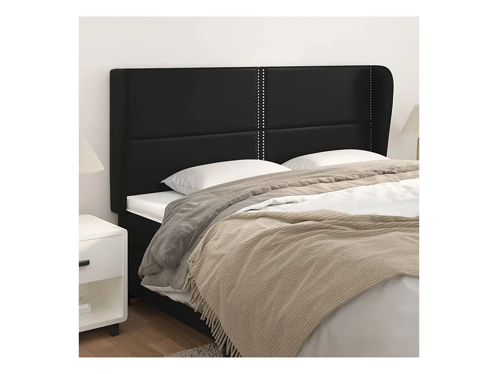 Cabecero con orejas cuero sintético negro 203x23x118/128 cm