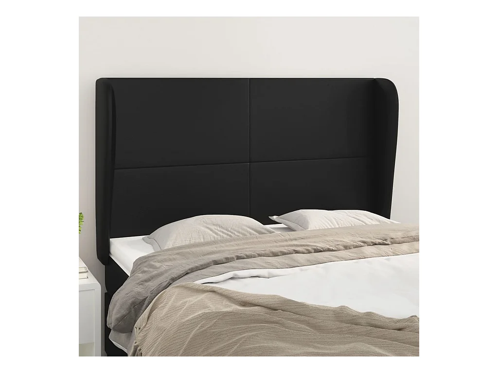 Cabecero con orejas de cuero sintético negro 147x23x118/128 cm ES95206