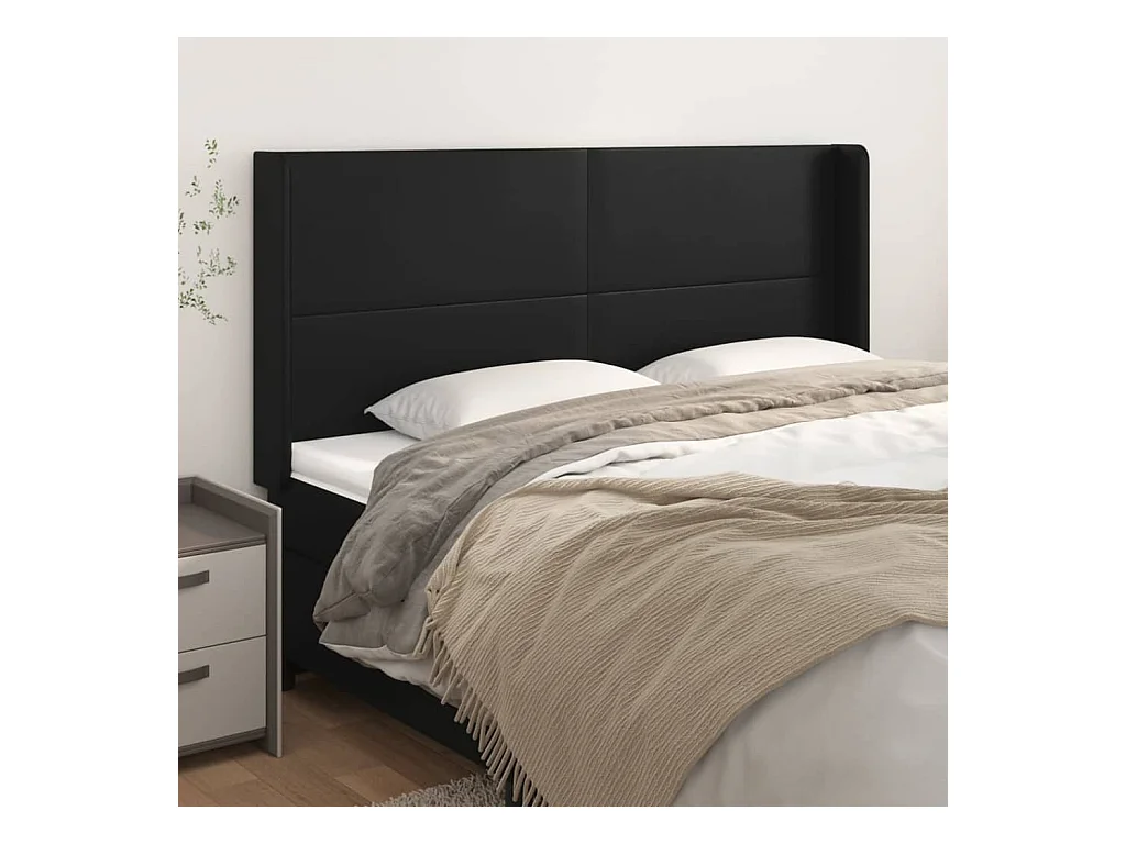 Cabecero con orejas de cuero sintético negro 203x16x118/128 cm ES44413