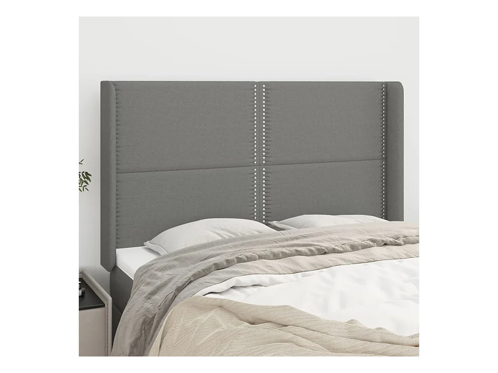Cabecero con orejas de tela gris oscuro 147x16x118/128 cm ES57198