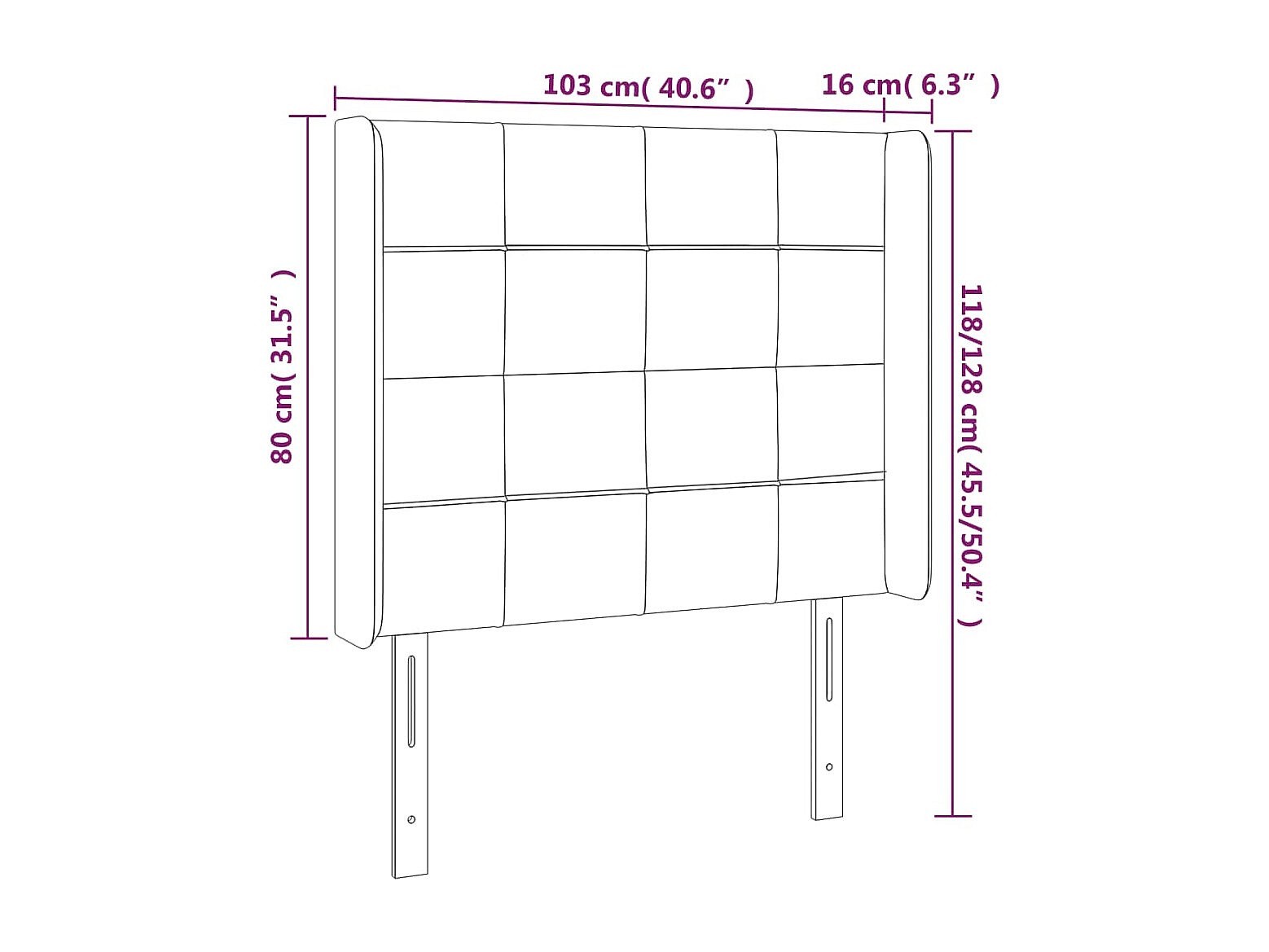 Cabecero con orejas de tela marrón oscuro 103x16x118/128 cm