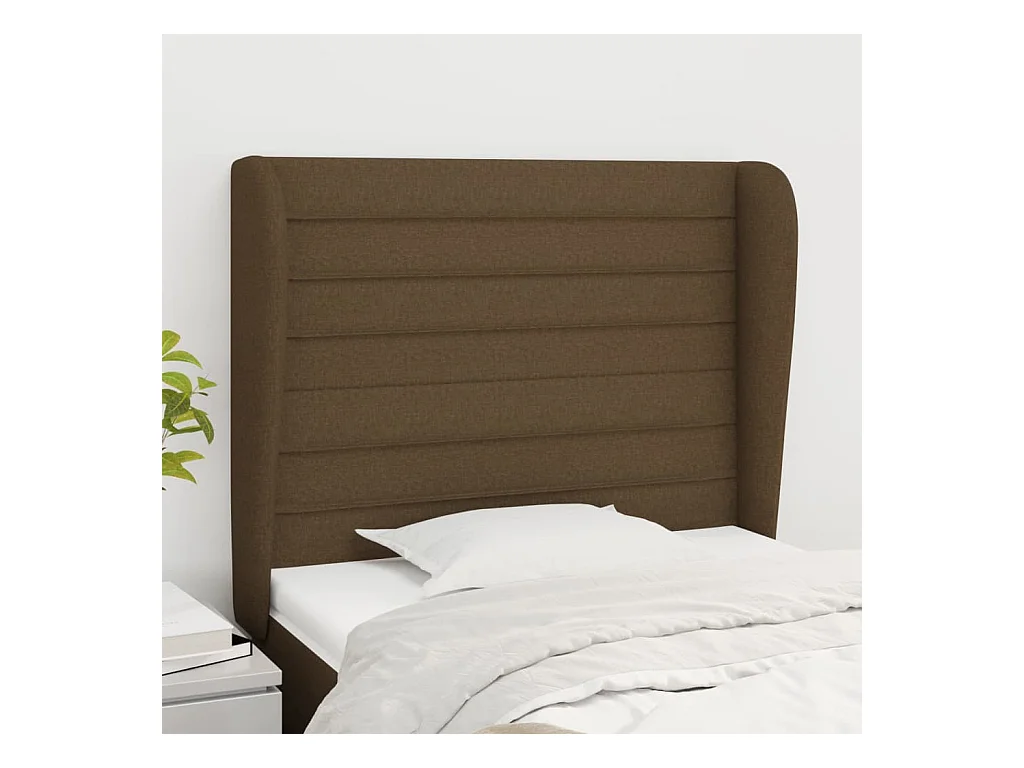 Cabecero con orejas de tela marrón oscuro 83x23x118/128 cm ES78263