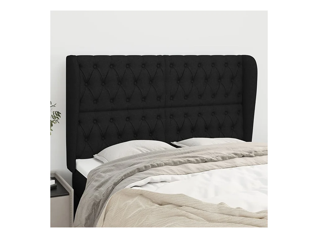 Cabecero con orejas de tela negro 147x23x118/128 cm ES58959