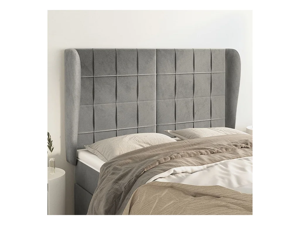 Cabecero con orejas de terciopelo gris claro 147x23x118/128 cm ES81231