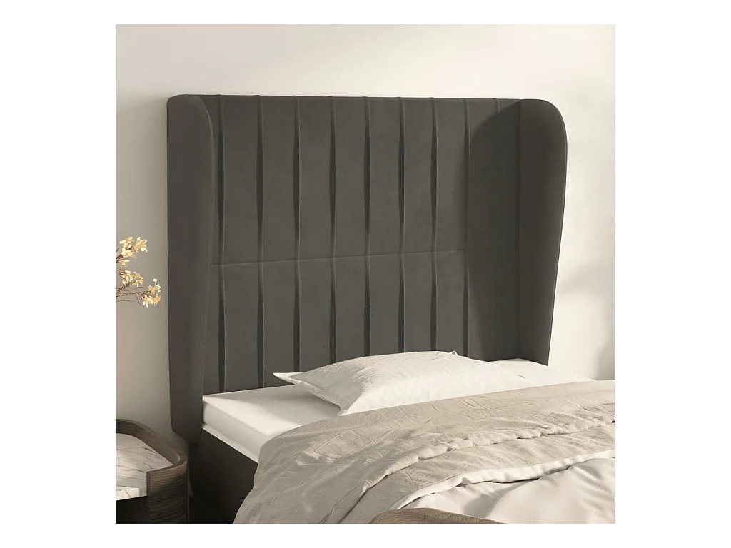 Cabecero con orejas de terciopelo gris oscuro 103x23x118/128 cm ES60096