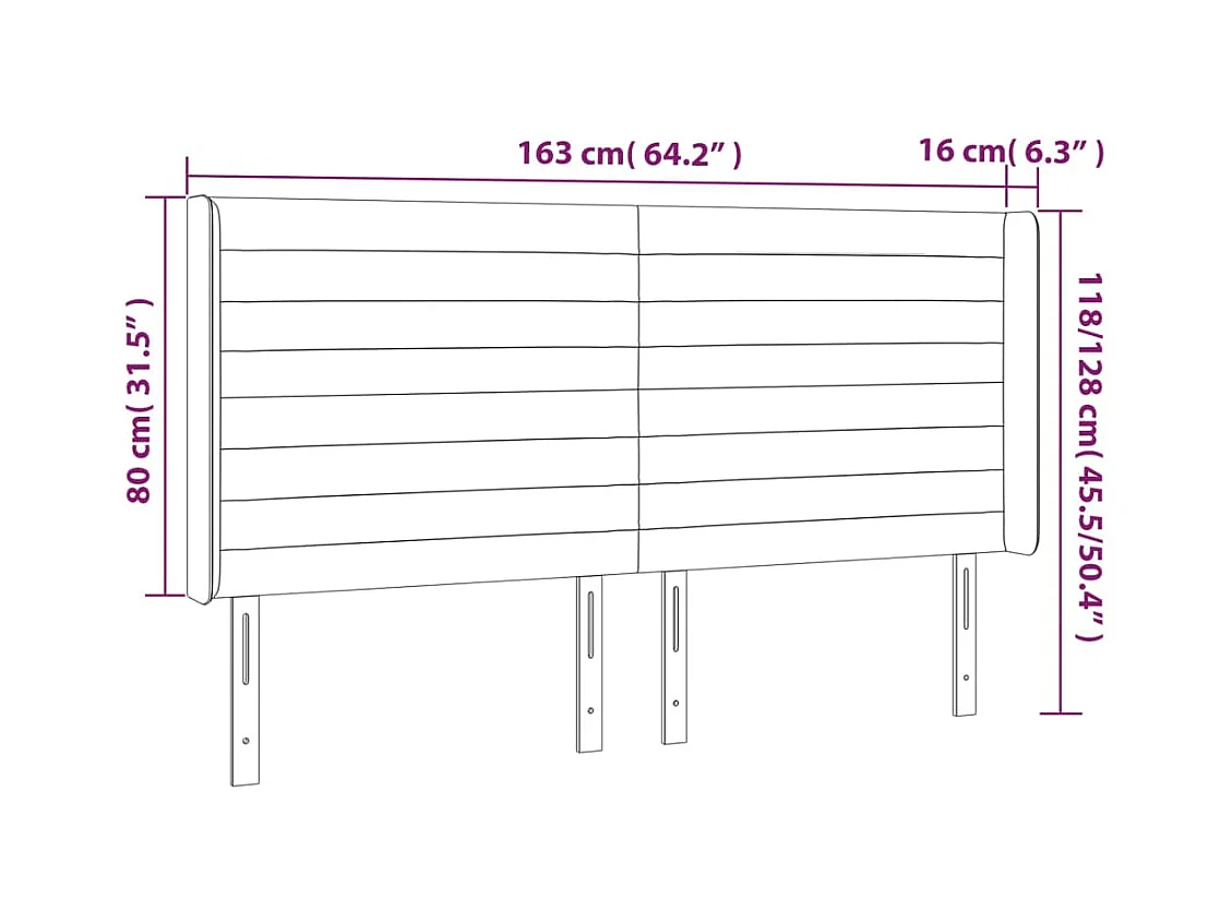 Cabecero con orejas de terciopelo gris oscuro 163x16x118/128 cm