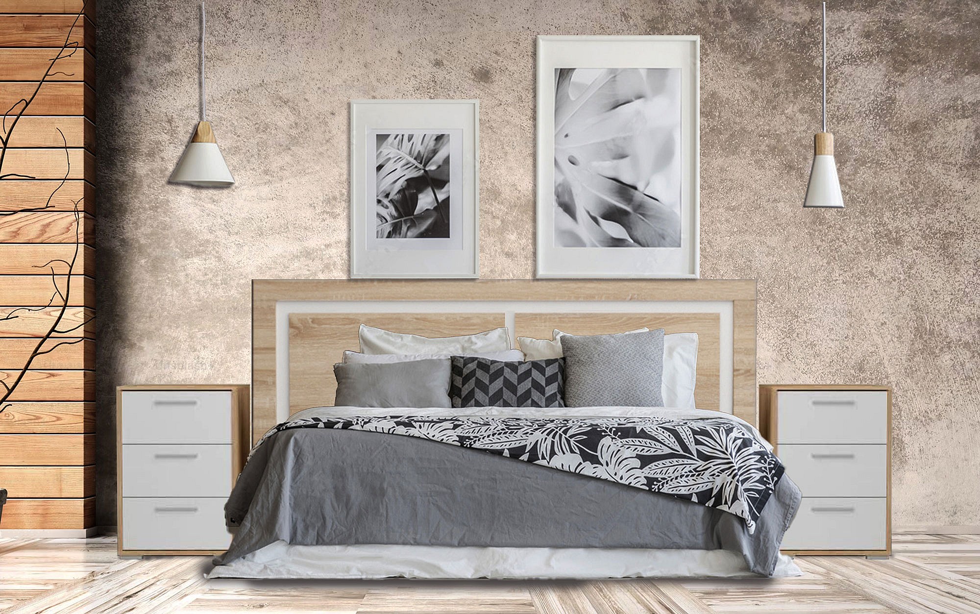 Cabecero de 155x60cm para Camas de 135 a 150 y Dos mesitas de Noche (Pata Alta, 3 Cajones) - Buyqualia