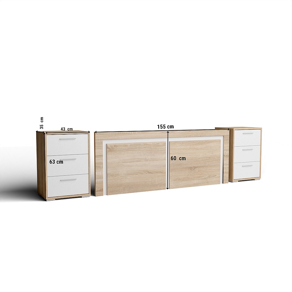 Cabecero de 155x60cm para Camas de 135 a 150 y Dos mesitas de Noche (Pata Baja, 3 Cajones) - Buyqualia
