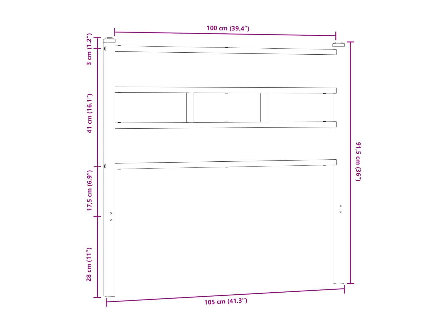 Cabecero de madera de ingeniería y acero roble Sonoma 100 cm