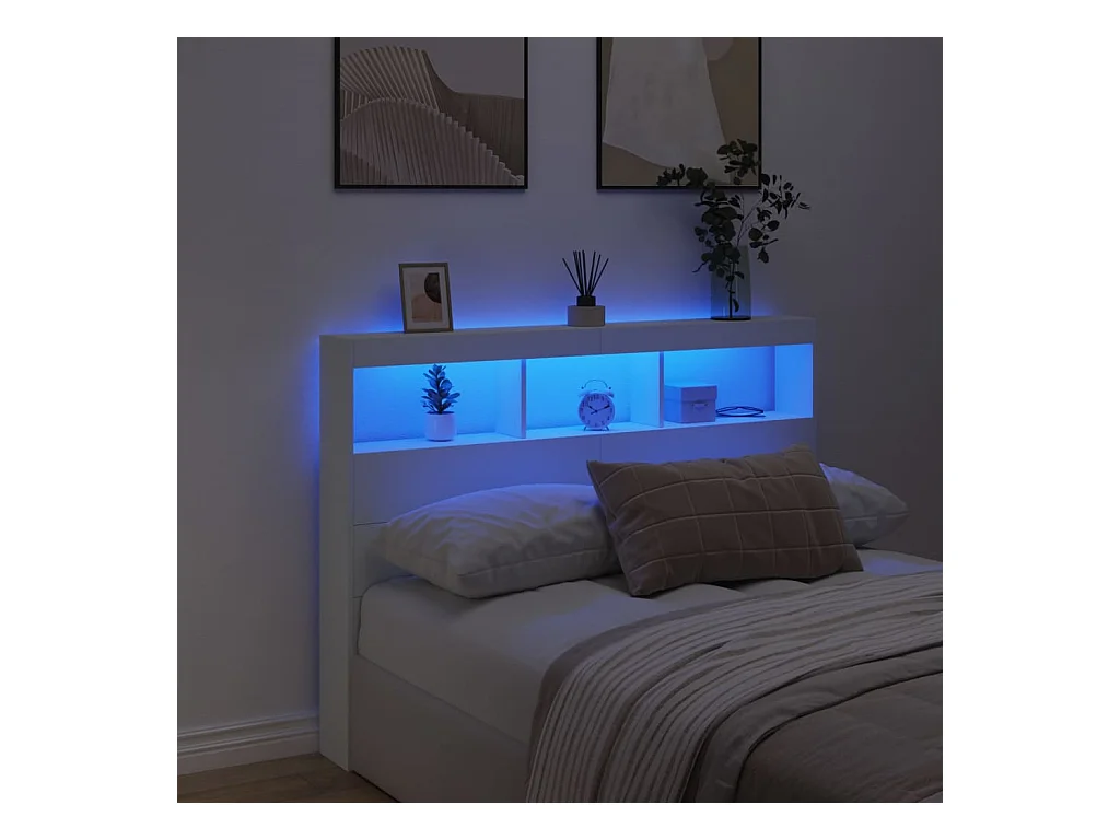 Cabecero LED blanco 140x18,5x103,5 cm madera de ingeniería