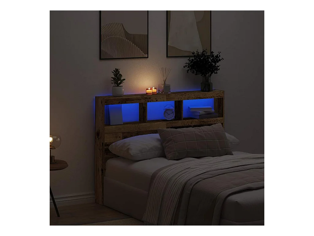 Cabecero de armario con LED madera vieja 140x17x102 cm