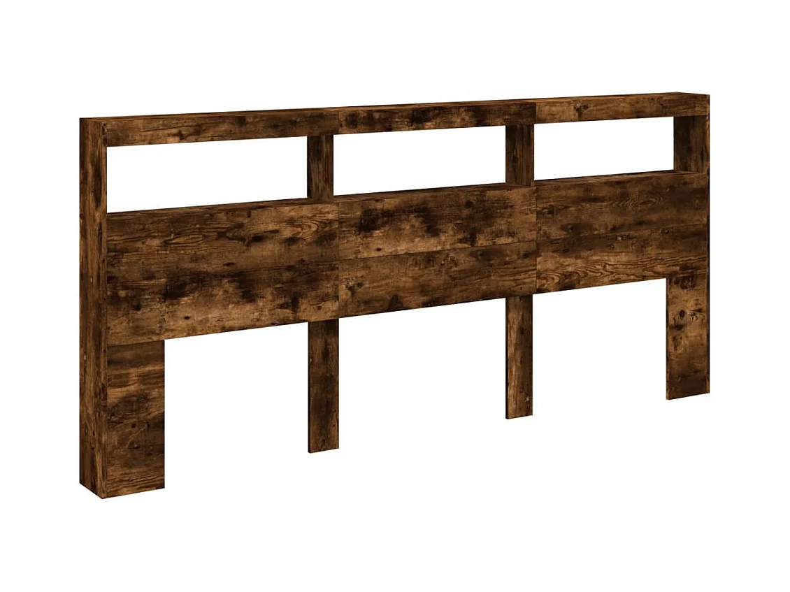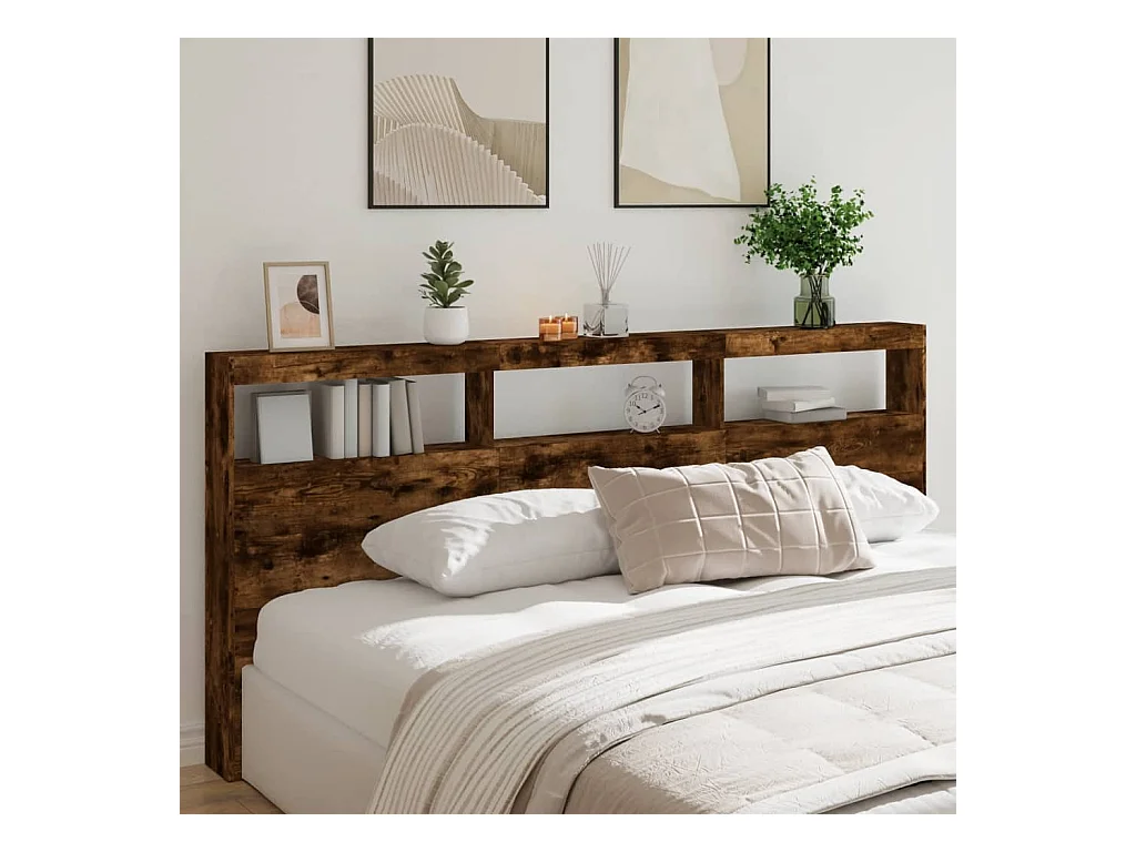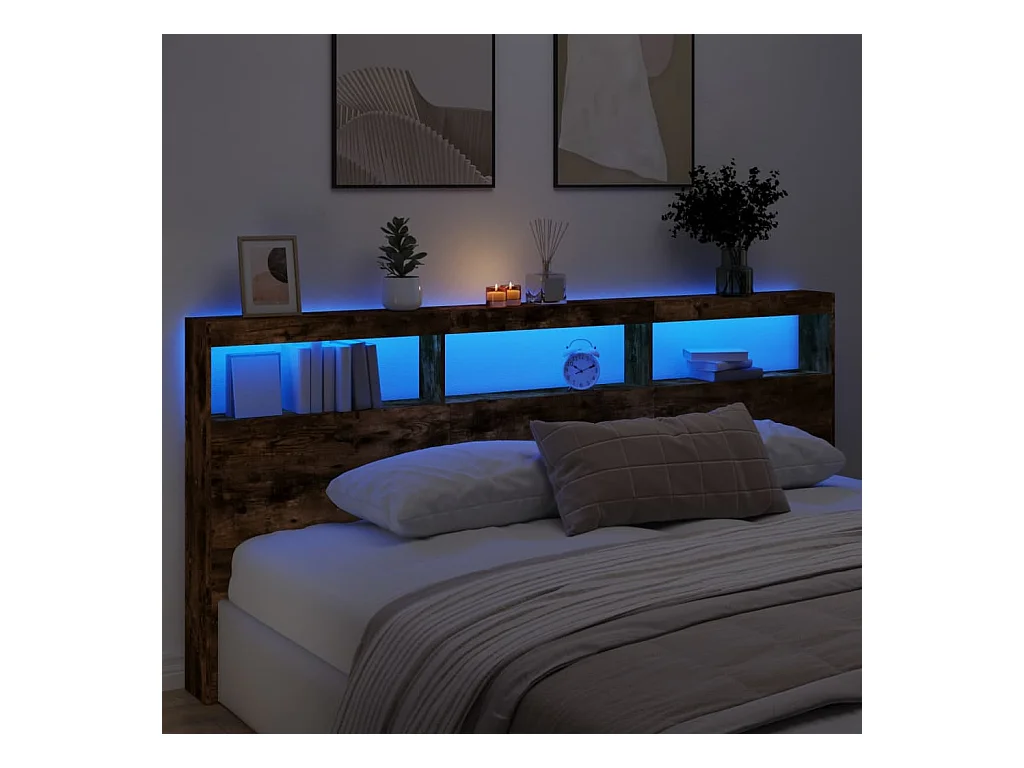 Cabecero de armario con LED roble ahumado 220x17x102 cm