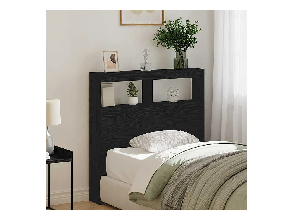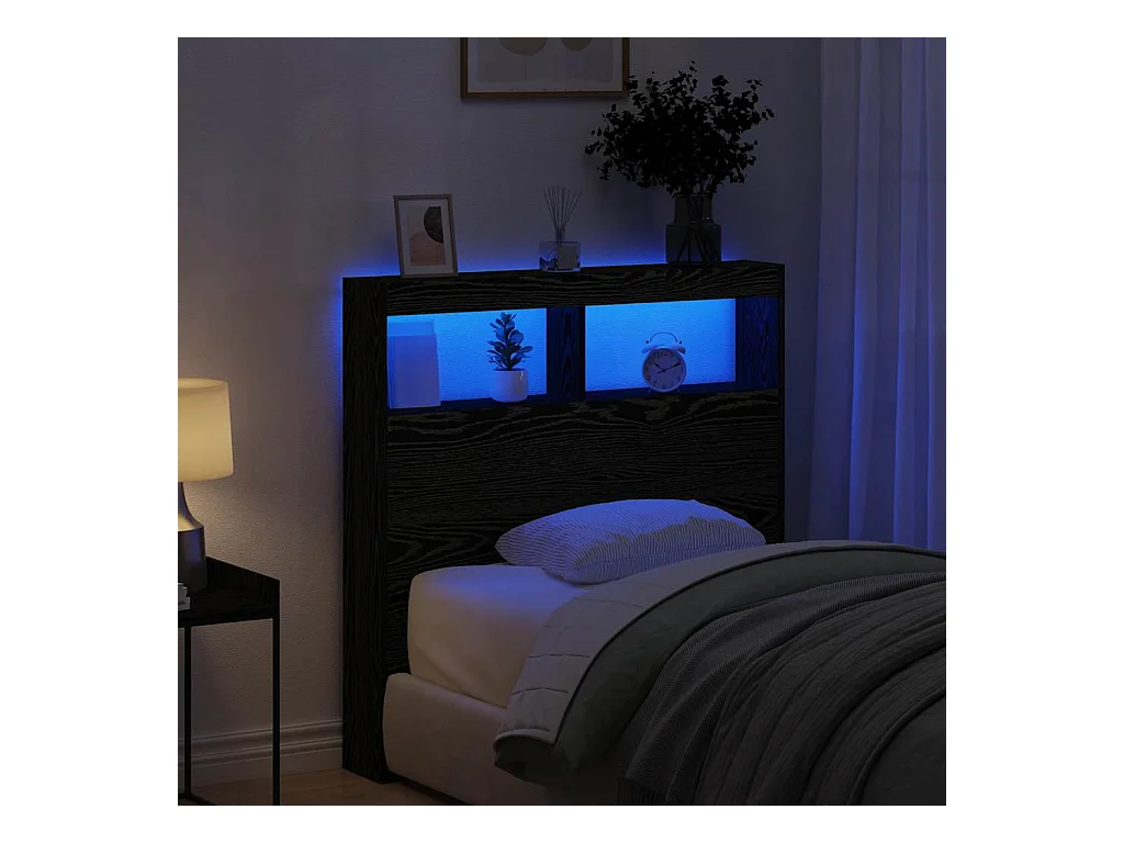 Cabecero de armario con LED roble negro 100x17x102 cm