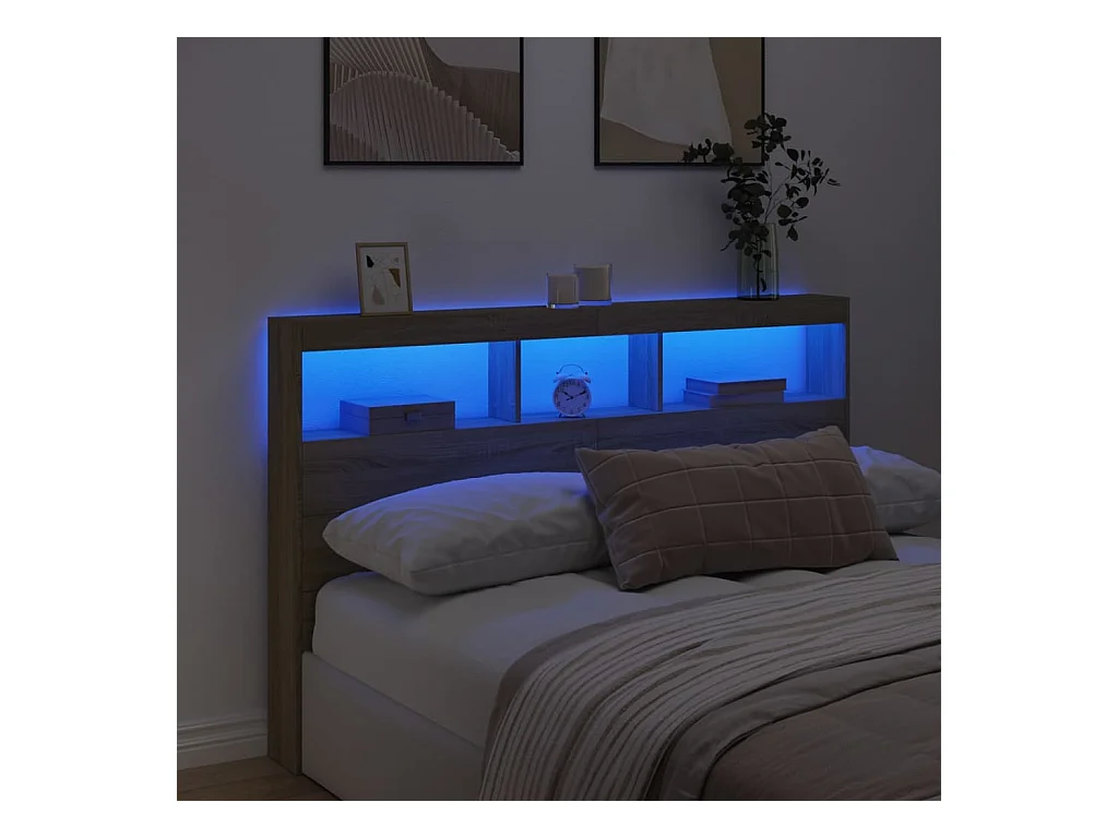Cabecero de armario con LED roble Sonoma 180x17x102 cm