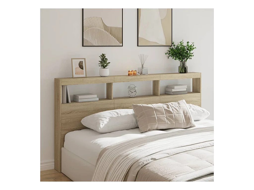 Cabecero de armario con LED roble Sonoma 180x17x102 cm