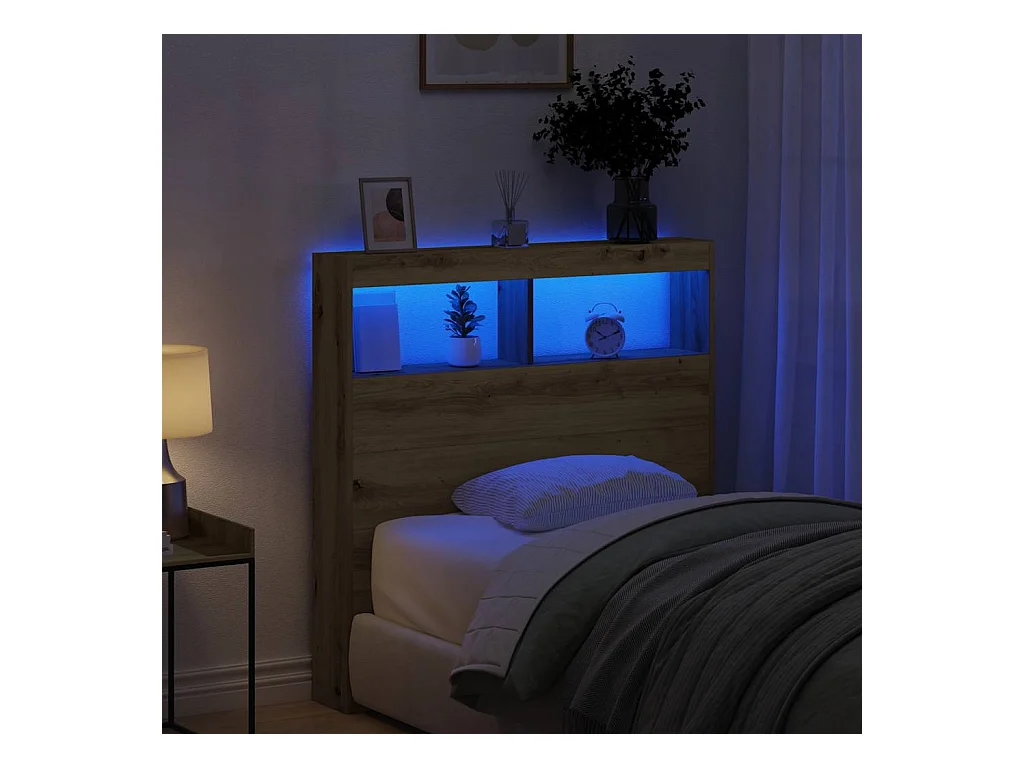 Cabecero de armario con LED roble Sonoma 100x17x102 cm