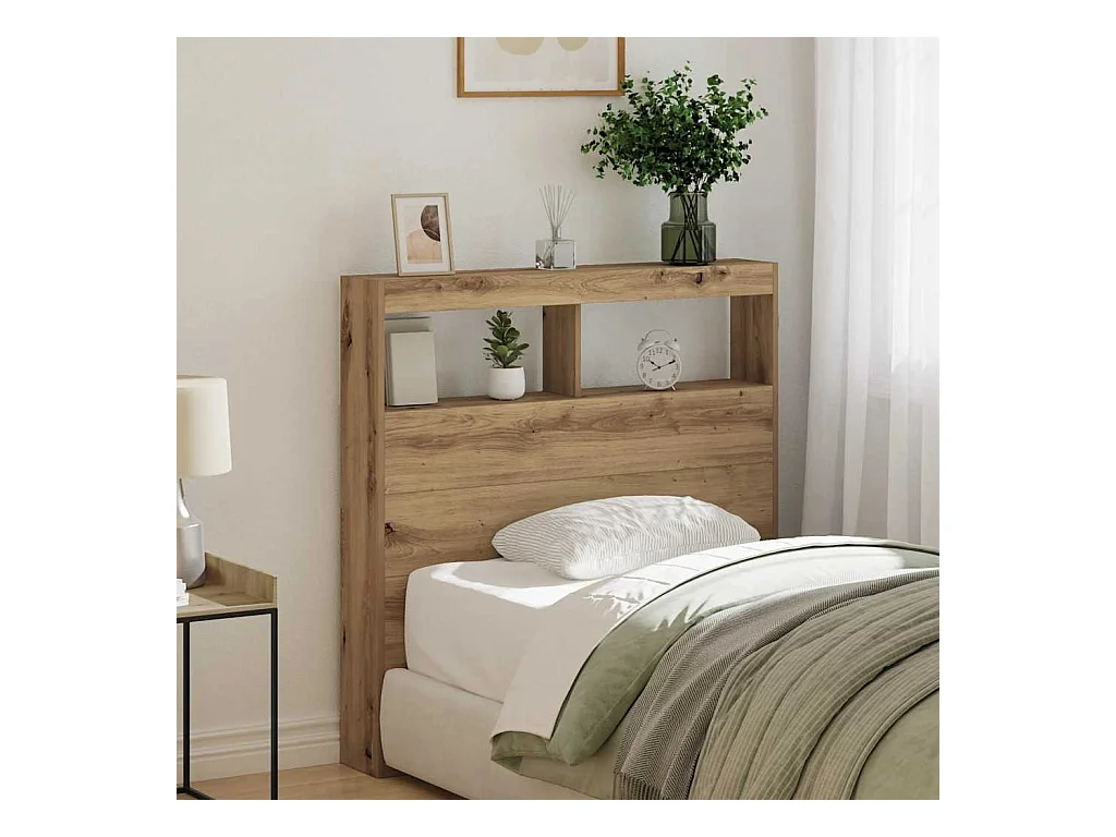 Cabecero de armario con luz LED, roble artesanal, 100x17x102 cm