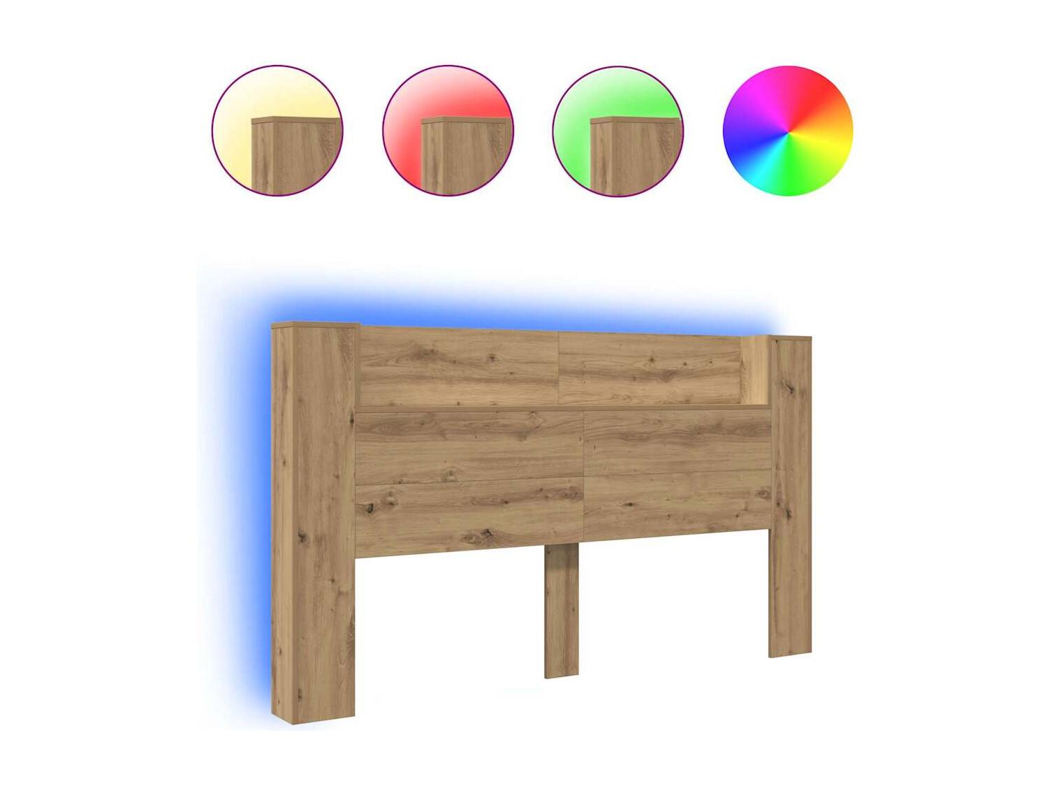 Cabecero LED madera ingeniería roble artisan 180x18,5x103,5 cm