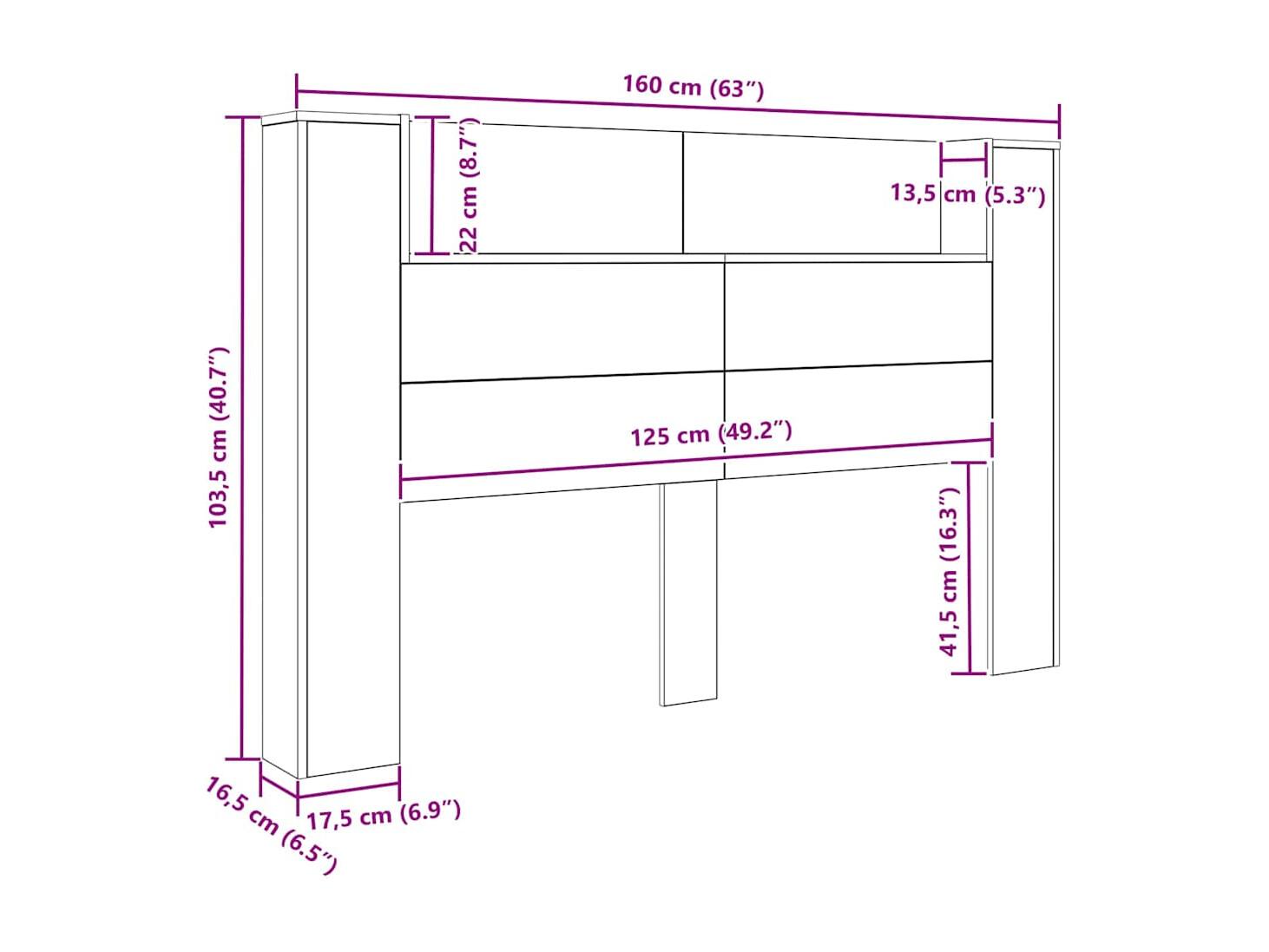 Cabecero con LED madera ingeniería envejecida 160x18,5x103,5 cm