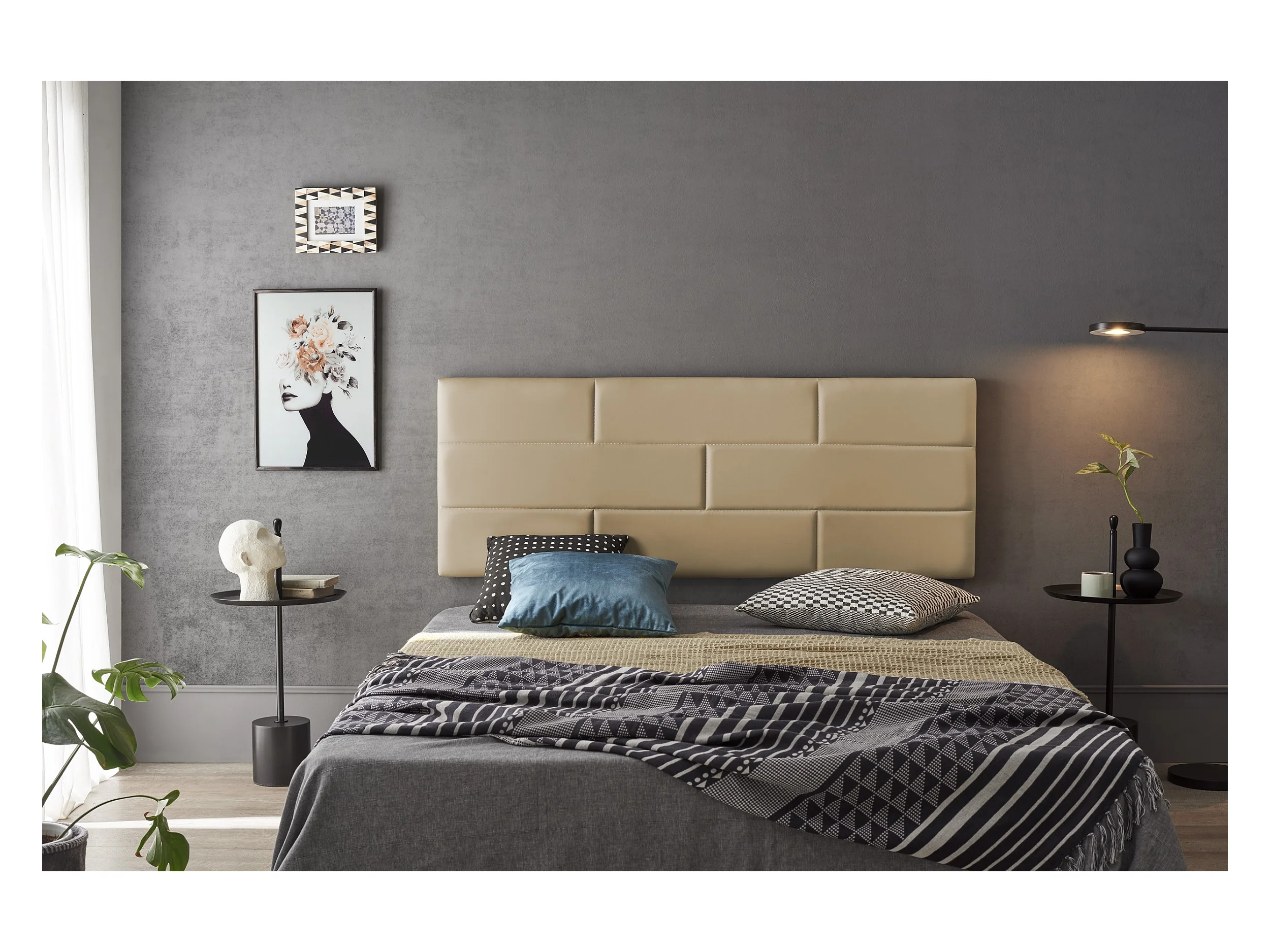 Cabecero de Cama 160 Muro Ladrillos de Polipiel 162x57x5cm Camel Claro