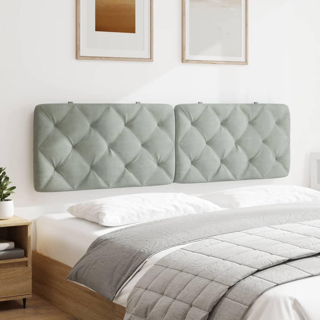 Cabecero de cama acolchado terciopelo gris claro 183 cm