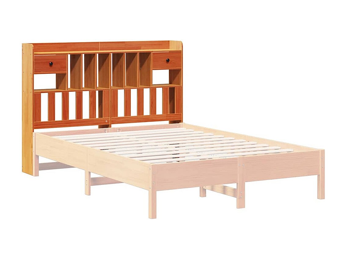 Cabecero de cama almacenaje madera maciza pino marrón 140 cm