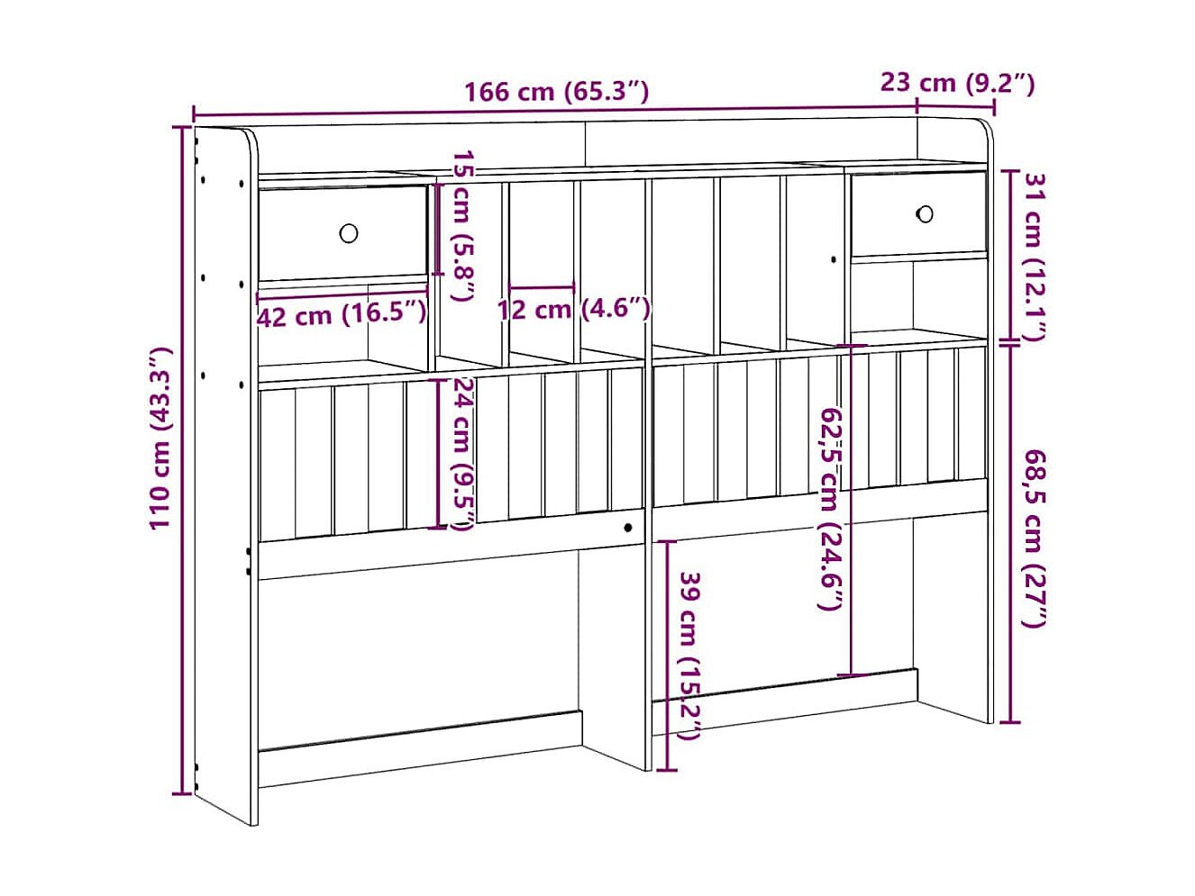 Cabecero de cama con almacenaje madera maciza de pino 160 cm