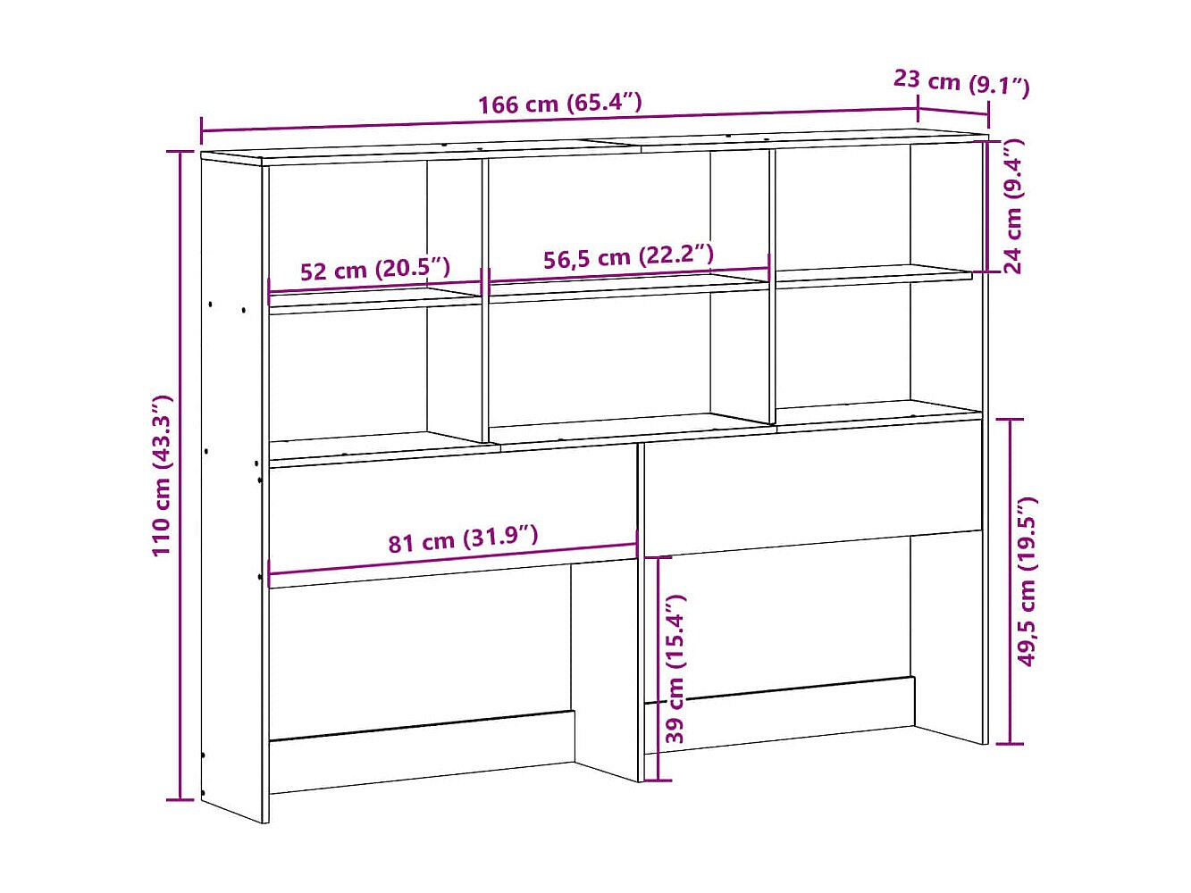 Cabecero de cama con almacenaje madera maciza de pino 180 cm