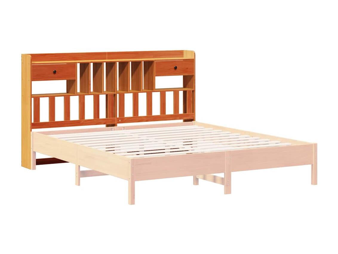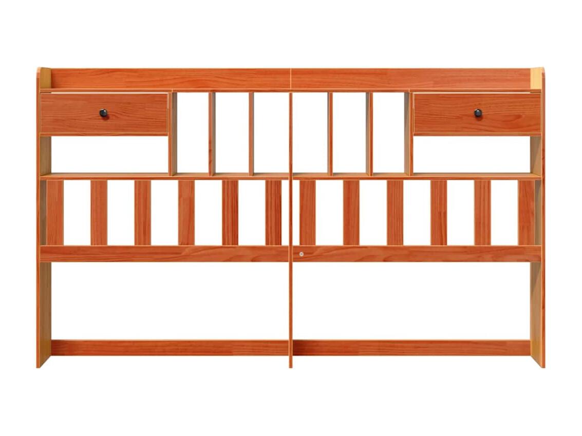 Cabecero de cama almacenaje madera maciza pino marrón 200 cm