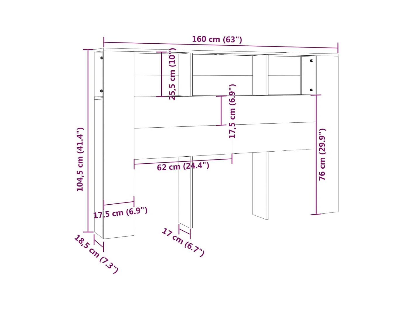 Mueble cabecero con almacenamiento | Cabecera de almacenamiento con estante Gris sonoma 160 cm