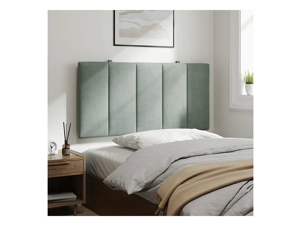 Cabecero de Cama | Cabezal de cama | Mueble de cabecero acolchado Hanko terciopelo gris claro 90 cm