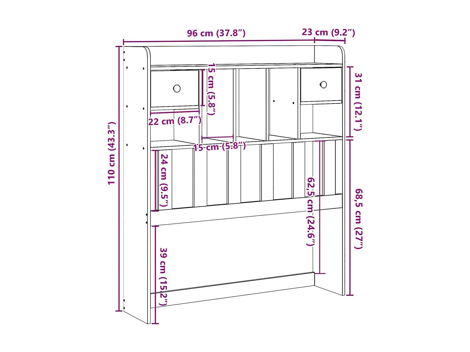 Cabecero de Cama | Cabezal de cama | Mueble de cabecero almacenaje madera maciza pino blanco 75 cm