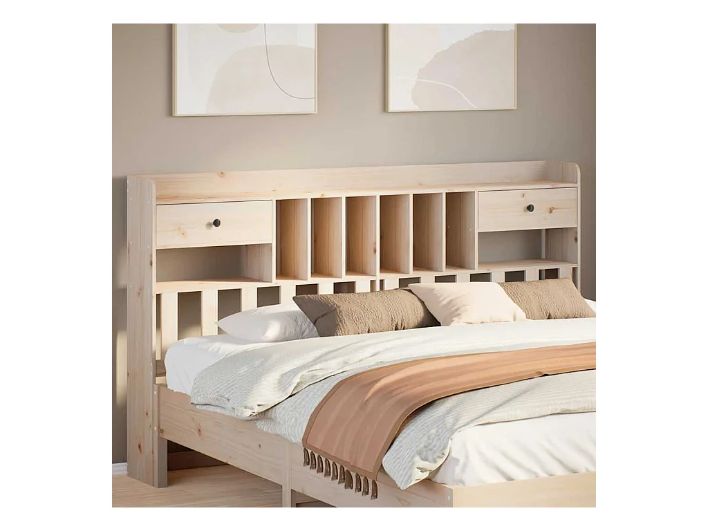 Cabecero de Cama | Cabezal de cama | Mueble de cabecero con almacenaje madera maciza de pino 180 cm