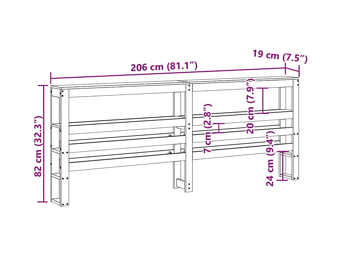 Cabecero de Cama | Cabezal de cama | Mueble de cabecero con estantes madera maciza de pino 200 cm