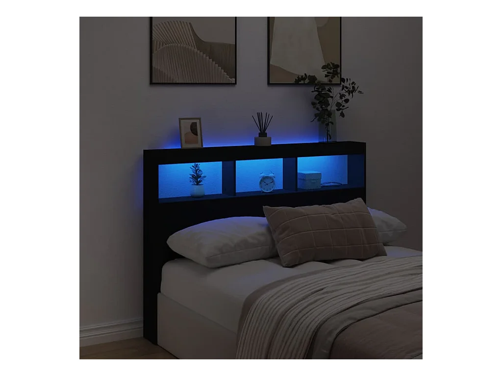 Cabecero de Cama | Cabezal de cama | Mueble de cabecero con LED negro 140x17x102 cm