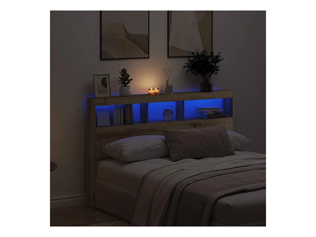 Mueble cabecero | Cabecero | Cabezal de cama LED madera ingeniería roble artisan 160x18,5x103,5 cm