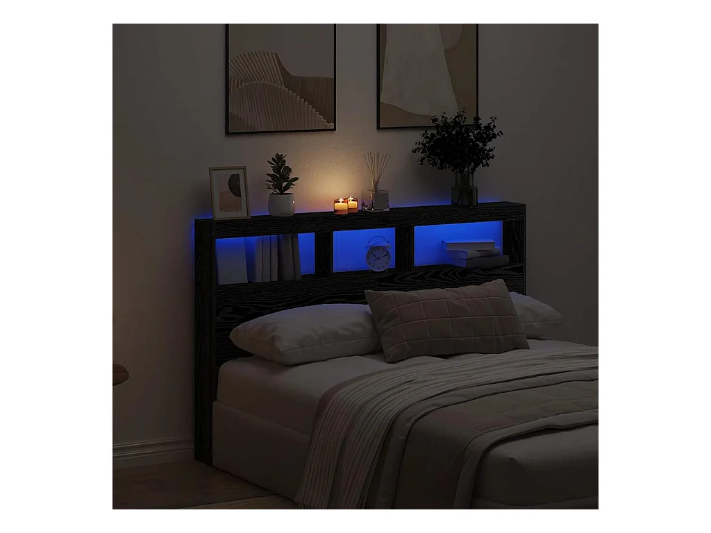 Cabecero de Cama | Cabezal de cama | Mueble de cabecero con LED roble negro 180x17x102 cm