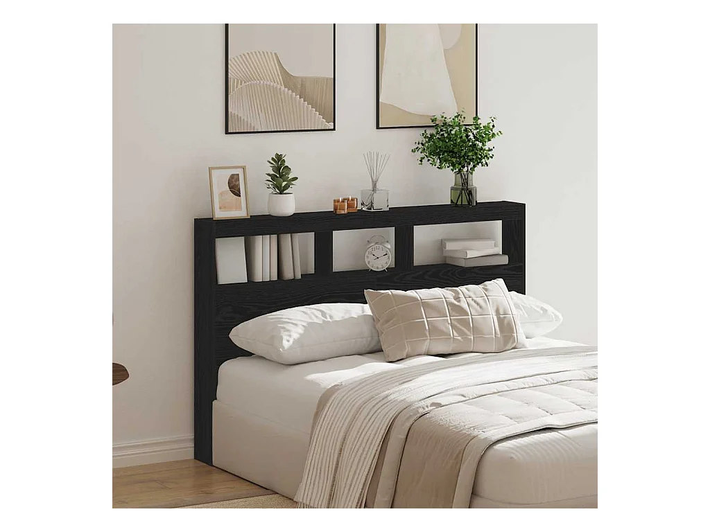 Mueble cabecero con almacenamiento | Cabecera de almacenamiento con estante Roble negro 150 cm