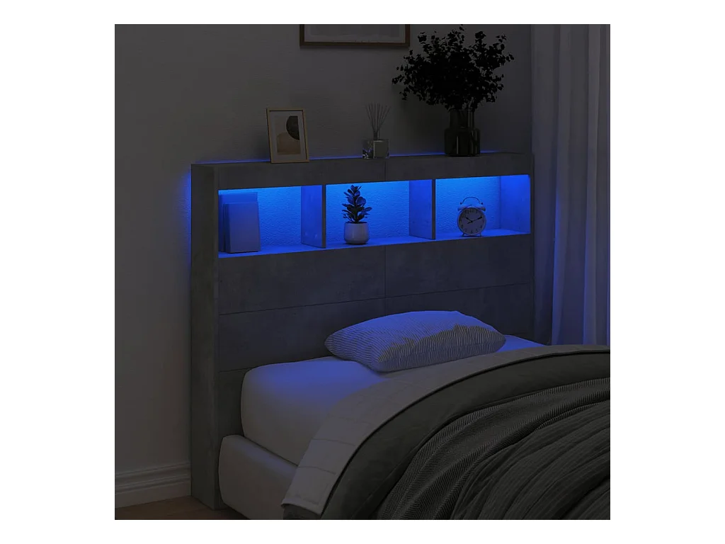 Cabecero de Cama | Cabezal de cama | Mueble de cabecero con luz LED gris hormigón 100x17x102 cm