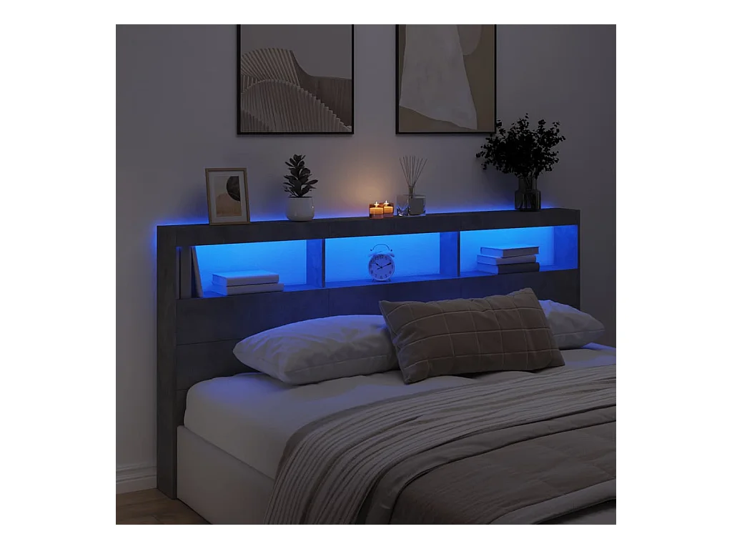 Cabecero de Cama | Cabezal de cama | Mueble de cabecero con luz LED gris hormigón 180x17x102 cm
