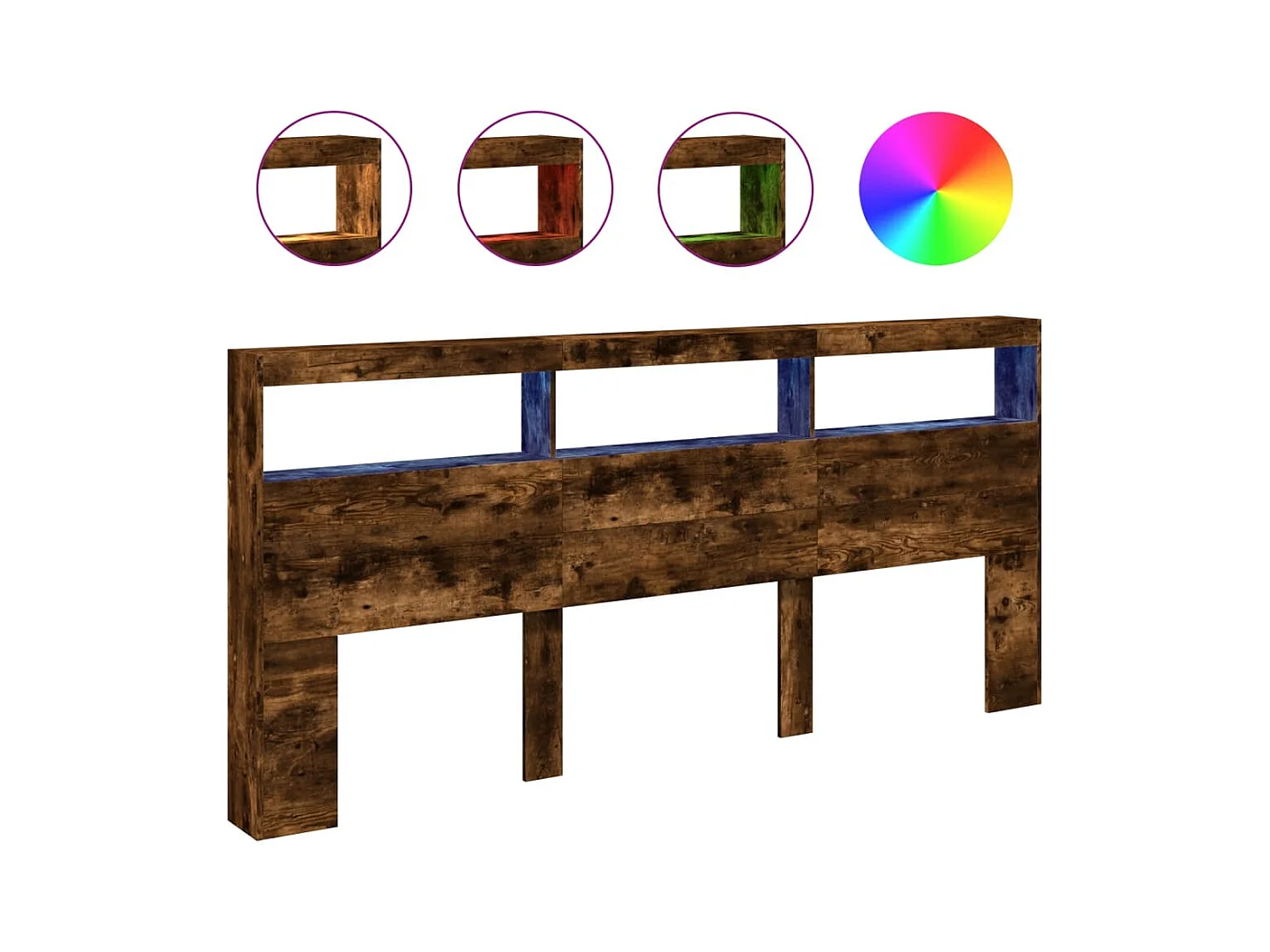 Cabecero de Cama | Cabezal de cama | Mueble de cabecero con luz LED roble ahumado 180x17x102 cm
