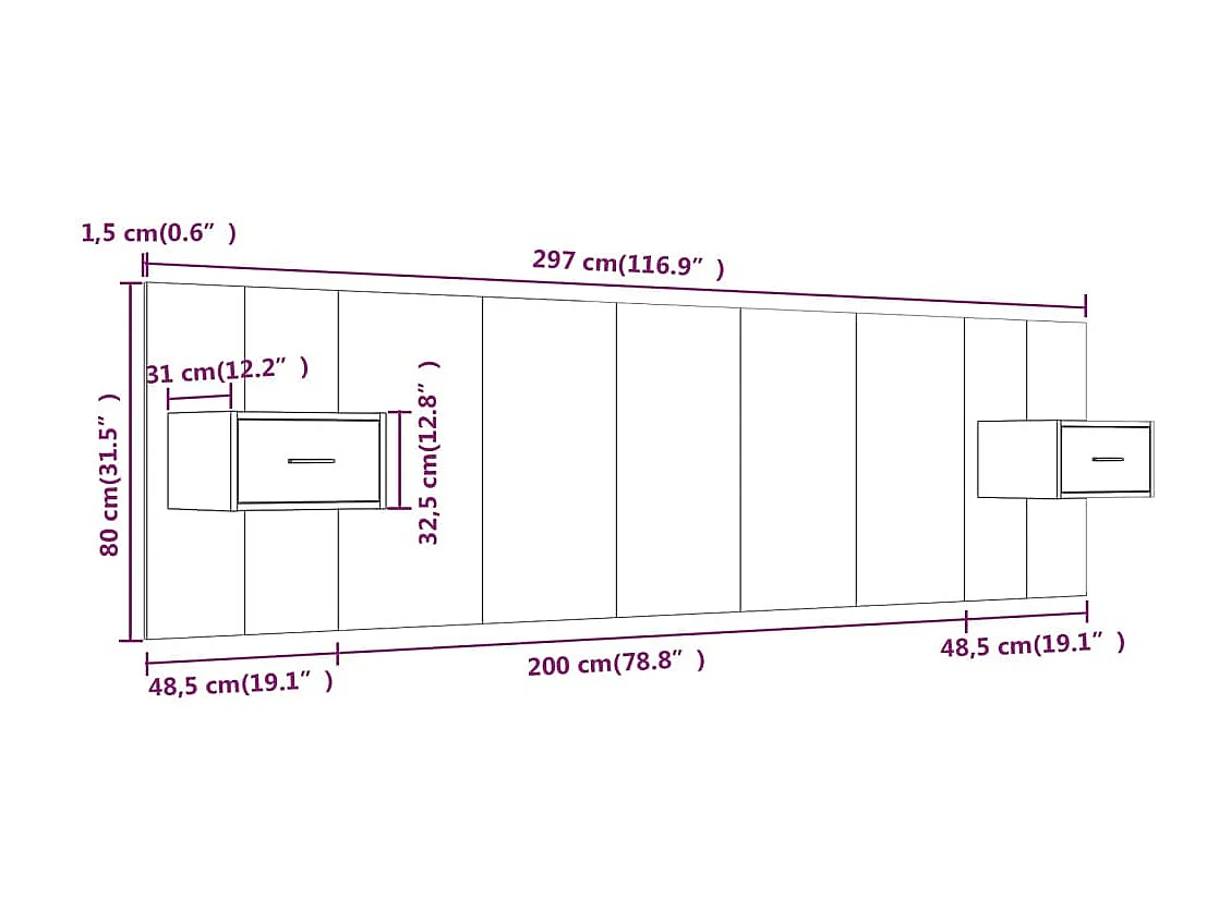 Cabecero de Cama | Cabezal de cama | Mueble de cabecero con mesitas madera contrachapada blanco