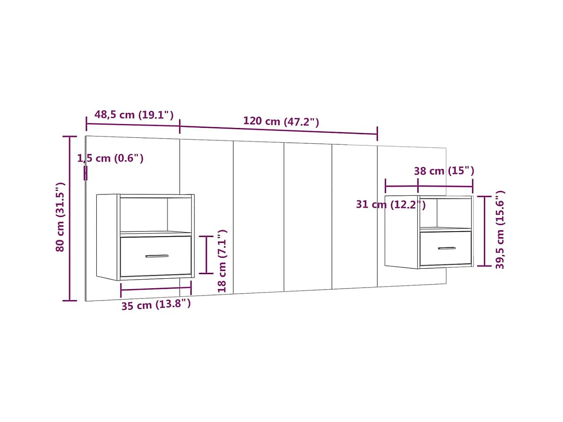 Cabecero de Cama | Cabezal de cama | Mueble de cabecero con mesitas madera contrachapada blanco
