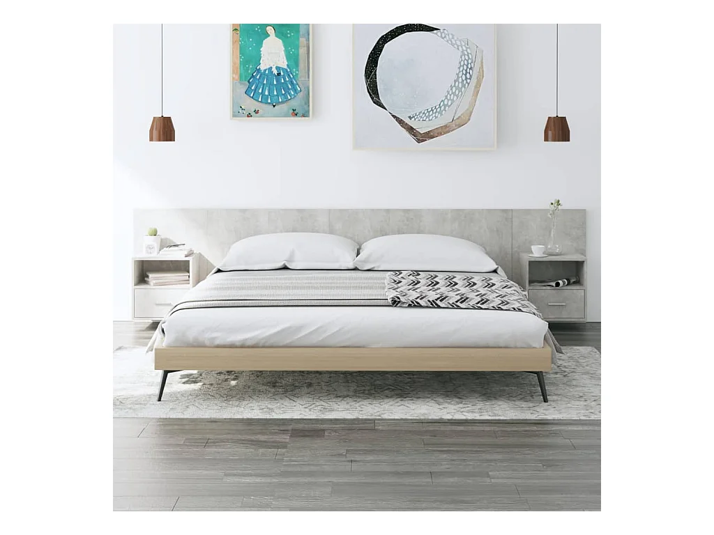 Cabecero de Cama | Cabezal de cama | Mueble de cabecero con mesitas madera contrachapada gris hormigón