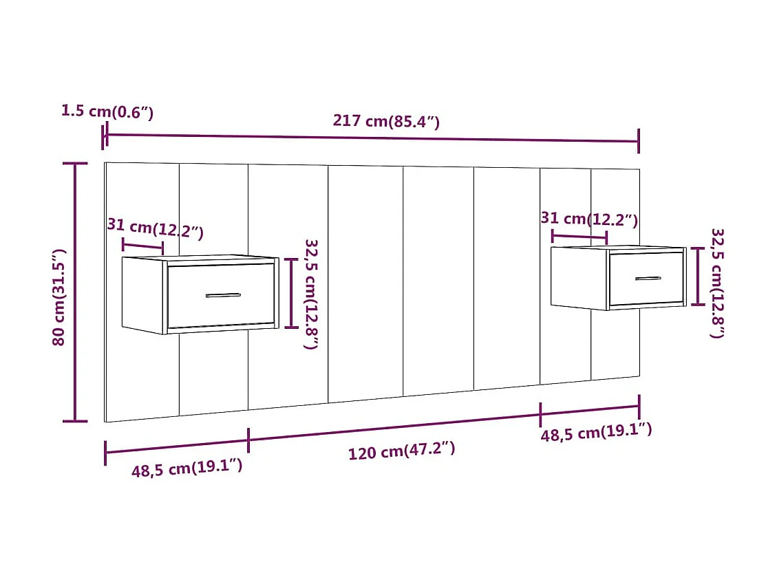 Cabecero de Cama | Cabezal de cama | Mueble de cabecero con mesitas madera contrachapada gris Sonoma