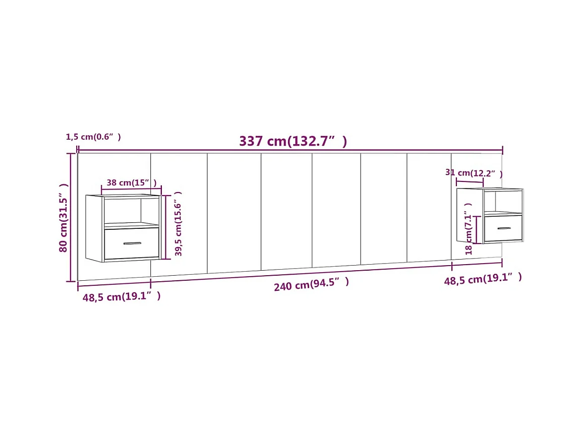 Cabecero de Cama | Cabezal de cama | Mueble de cabecero con mesitas madera contrachapada roble ahumado